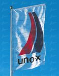 Livré complet avec accessoires et fixation : pommeau doré pivotant, drisse intérieure, taquet intérieur, boîtier antivol avec clé, contrepoids, fixation : platine basculante en acier galvanisé à chaud.